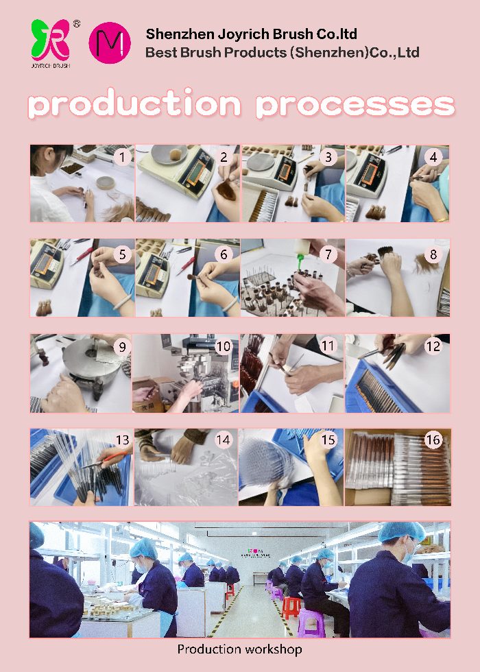 Wir verfügen über spezialisierte Produktionsanlagen, fortschrittliche Ausrüstung und ein Team erfahrener Handwerker. Wir bieten auch maßgeschneiderte Dienstleistungen an, einschließlich privater Etikettierung, kundenspezifischer Pinselgrößen und Griffdesigns.
